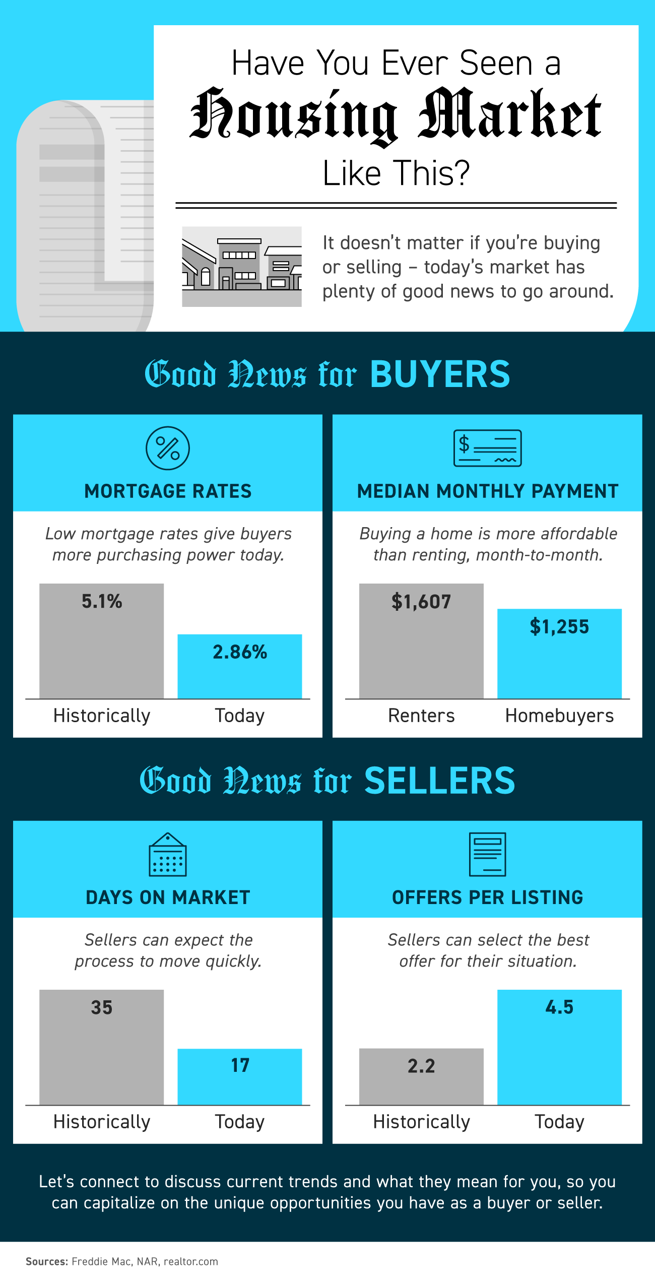 That equity, plus today’s low mortgage rates, can fuel a major upgrade when you sell your home and purchase a new one. Or, if you’re looking to downsize, your equity can help provide a larger down payment and lower your monthly payments over the life of your next loan. No matter what, there are significant financial benefits to selling in today’ s market.